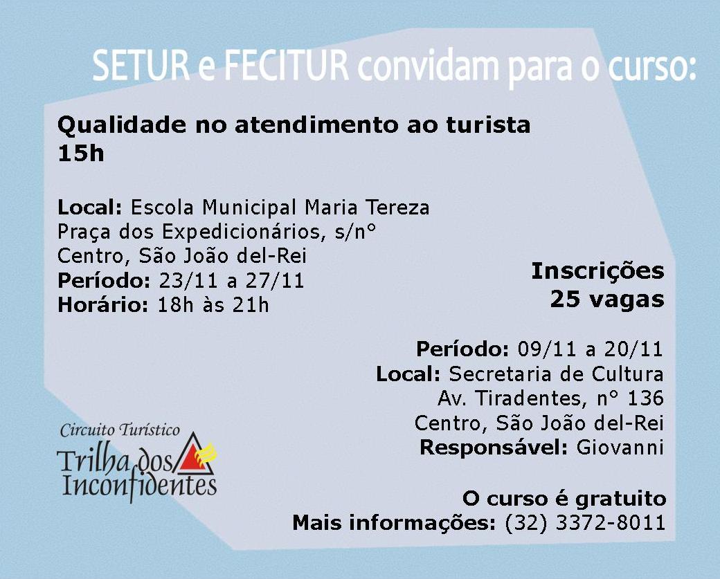 Curso . Qualidade de Atendimento ao Turista . de 23 a 27 de novembro