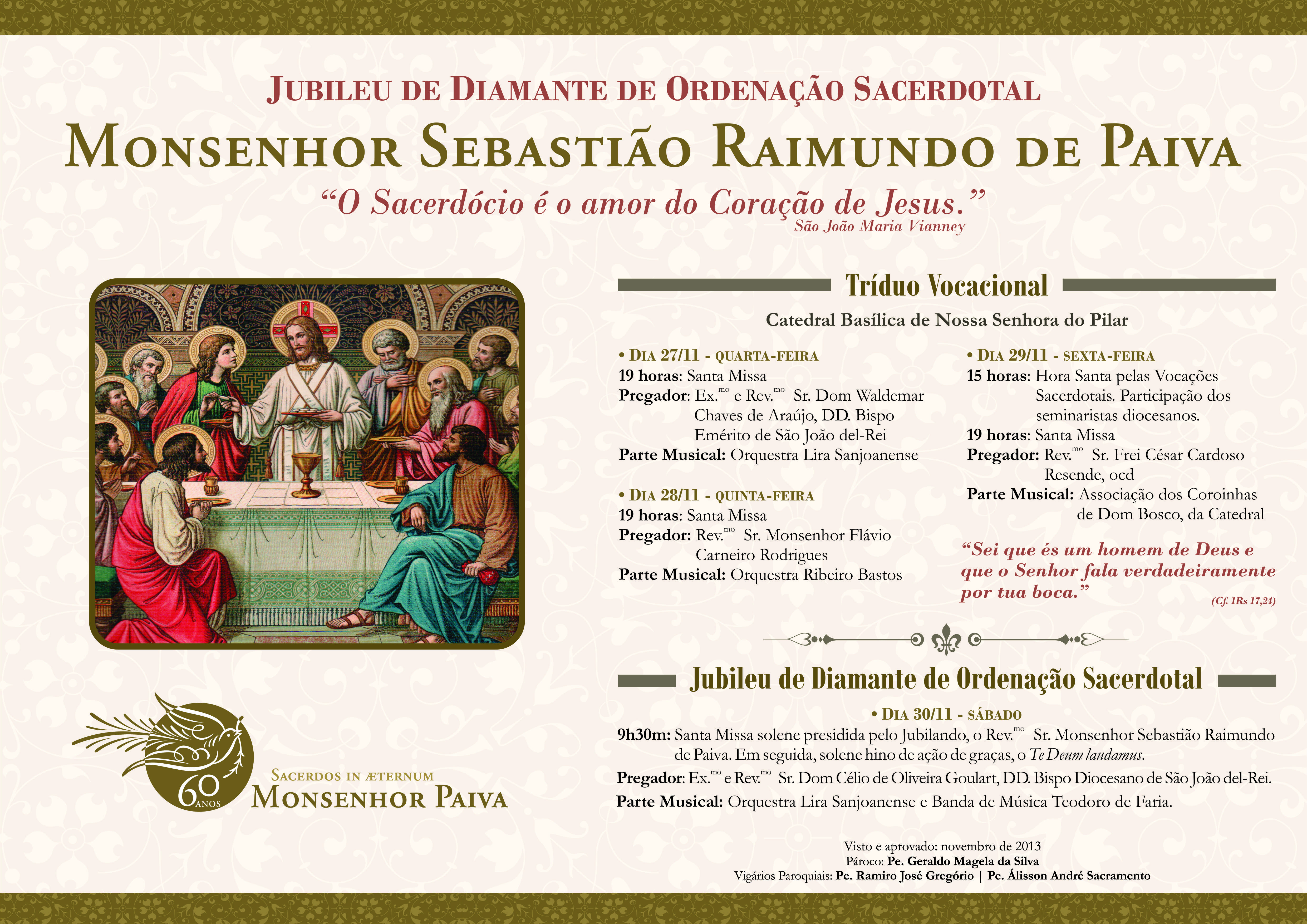 Jubileu de Ordenação Sacerdotal Monsenhor Sebastião Raimundo de Paiva . De 27 a 30/11 . Programação Completa