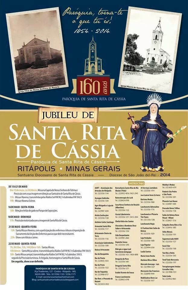Jubileu de Santa Rita de Cássia . 13 a 22/05 . Programação Completa