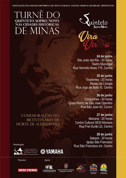 Turnê do Quinteto Sopro Novo nas cidades históricas de Minas . 24 a 28/06