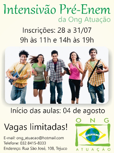 Intensivão Pré-Enem . ONG Atuação . Inscrições até 31/07