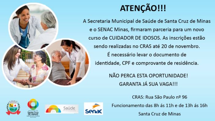 Curso Cuidador de Idosos . Último dia para as inscrições
