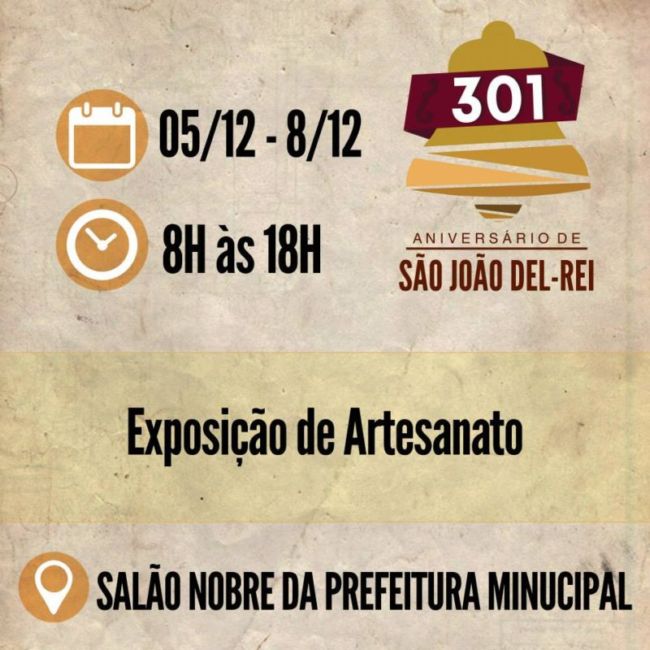 Exposição de Artesanado . Evento 300 anos +1 . SÃO JOÃO DEL-REI COMPLETA 301 ANOS DIA 8 DE DEZEMBRO