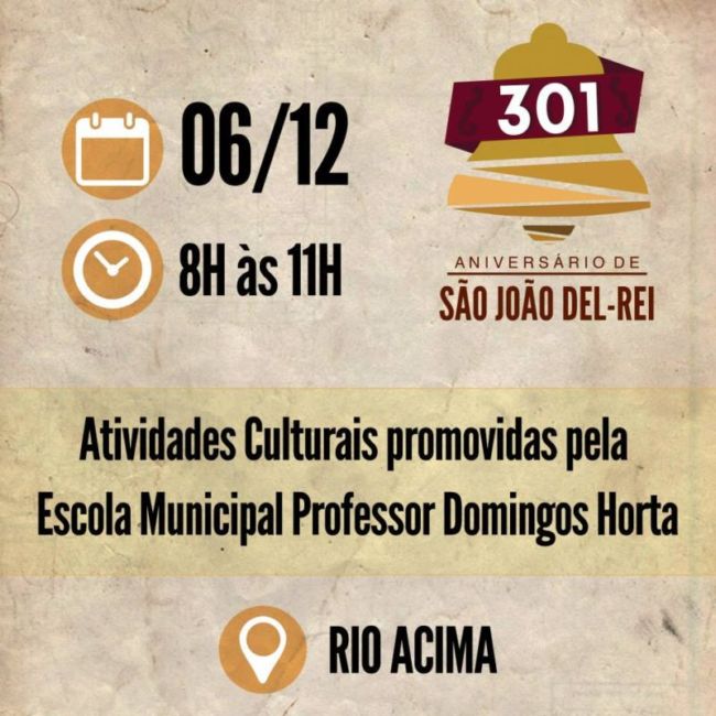 Atividade Culturais pela Escola Municipal Prof. Domingos Horta . Evento 300 anos +1 . SÃO JOÃO DEL-REI COMPLETA 301 ANOS DIA 8 DE DEZEMBRO