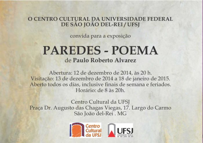 Amanhã, 18, termina a Exposição "Paredes - Poema" de Paulo Roberto Alvarez que teve início em dezembro de 2014, no Centro Cultural da UFSJ.