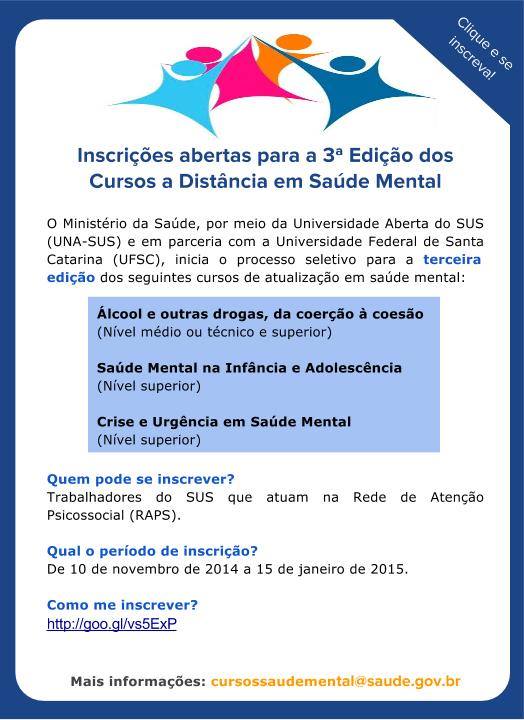 3ª Edição dos Cursos a Distância em Saúde Mental . Inscrições abertas!