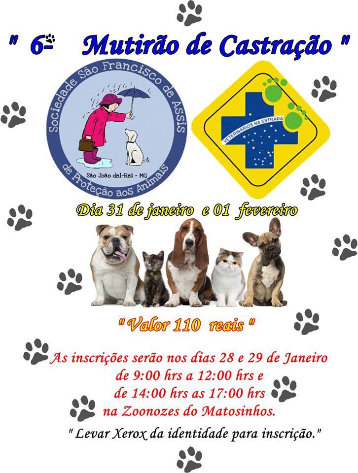 6º Mutirão de Castração . 31/01 a 01/02