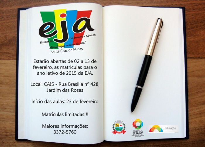 Matrículas Abertas para o EJA em Santa Cruz de Minas . 02 a 13/02