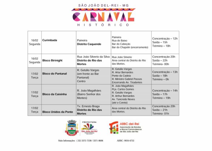 Confira a programação dos últimos dias da semana antecipada de carnaval com os blocos da histórica São João del Rei: