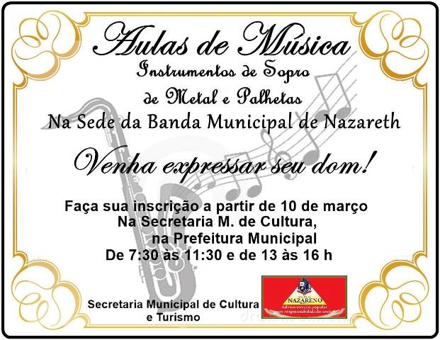 Aulas de Música . Banda Municipal de Nazareth . Inscrições abertas!