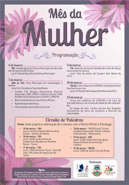 Circuito de Palestras, apresentações, filmes . Mês da Mulher . 06 a 31/03