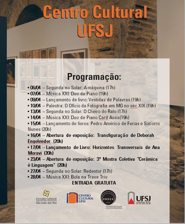 Confira toda a programação do mês de Abril do Centro Cultural da UFSJ: