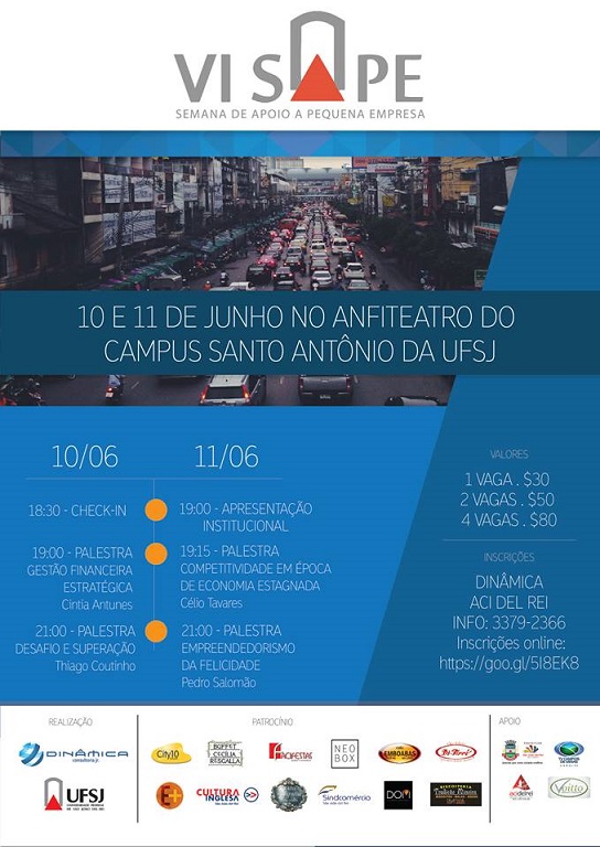 A Semana de Apoio a Pequena Empresa é um evento realizado pela Dinâmica Consultoria Júnior com o objetivo de capacitar os gestores para o desenvolvimento das micro e pequenas empresas de São João del-Rei e Campo das Vertentes