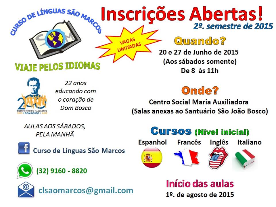Curso de línguas São Marcus . Inscrições abertas de 20 a 27/06