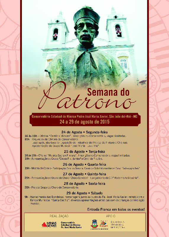 Semana do Patrono . Conservatório Estadual de Música Padre José Maria Xavier . De 24 a 29/08