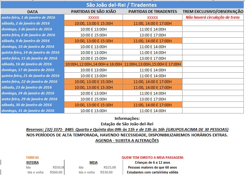 Confira a agenda de Circulação de Trens - Janeiro de 2016: