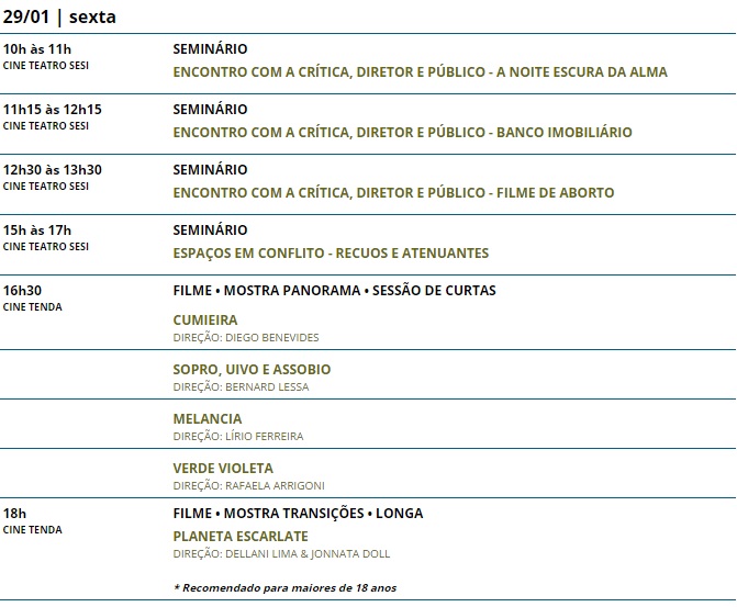 19ª Mostra de Cinema de Tiradentes . Programação completa do dia 29/01