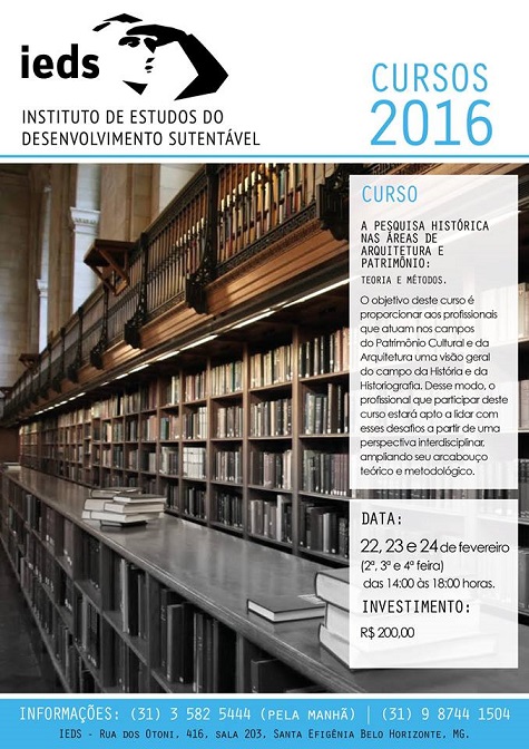 Curso "A pesquisa histórica nas áreas de arquitetura e patrimônio: teoria e métodos" . IEDS . De 22 a 24/02
