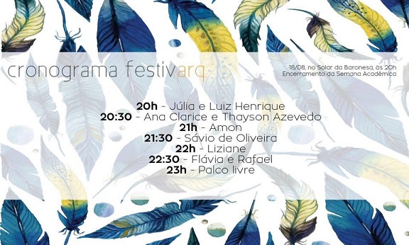 No Solar da Baronesa está começando o I FestivArq, o festival de talentos do curso de Arquitetura e Urbanismo da UFSJ.