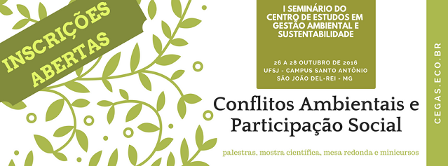 I Seminário do Cegas: Conflitos Ambientais e Participação Social . De 26 a 28/10