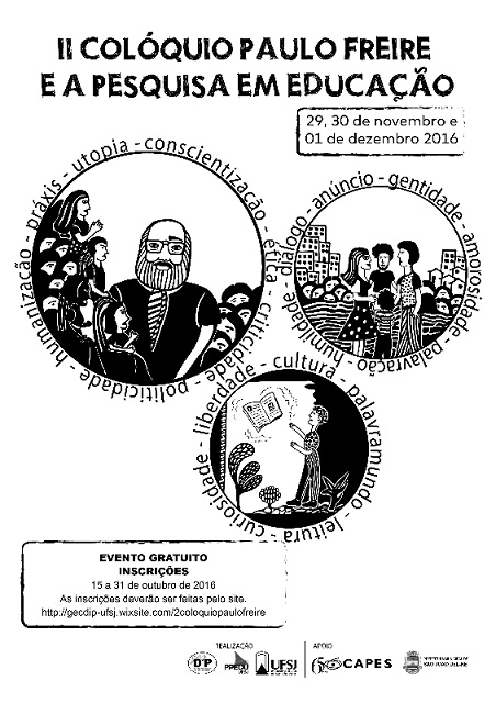 Nos dia 29 e 30 de novembro e 01 de dezembro acontece o II Colóquio Paulo Freire e a Pesquisa em Educação. O evento é gratuito e as inscrições são de 15 a 31 de outubro somente pelo site. O II Colóquio Paulo Freire e a Pesquisa em Educação é uma iniciativa do Grupo de Estudos Críticos do Discurso Pedagógico – GECDiP, que desde 2011, estimula o desenvolvimento de estudos e pesquisas nos campos Educação e Linguagem, Crítica e Política, Formação e Prática Docente, sob a égide do diálogo libertador das filosofias humanas de Paulo Freire e Mikhail Bakhtin.