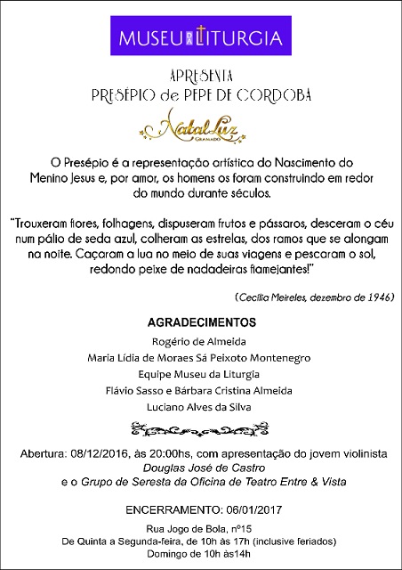 Presépio de Pepe de Cordoba . Museu da Liturgia . De 08/12 a 06/01