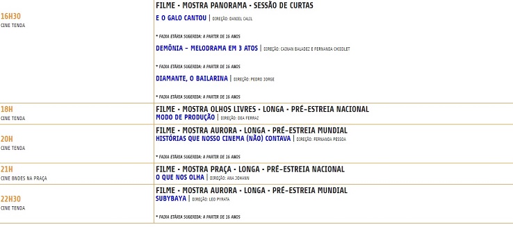 20ª Mostra de Cinema de Tiradentes . Programação completa de 26/01