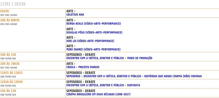 20ª Mostra de Cinema de Tiradentes . Programação completa de 27/01