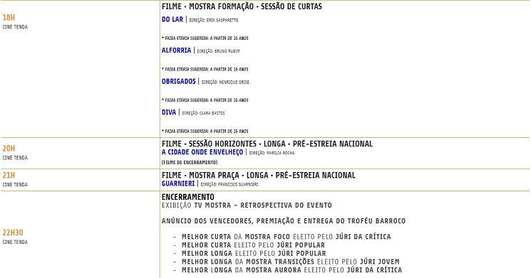 20ª Mostra de Cinema de Tiradentes . Programação completa de 28/01