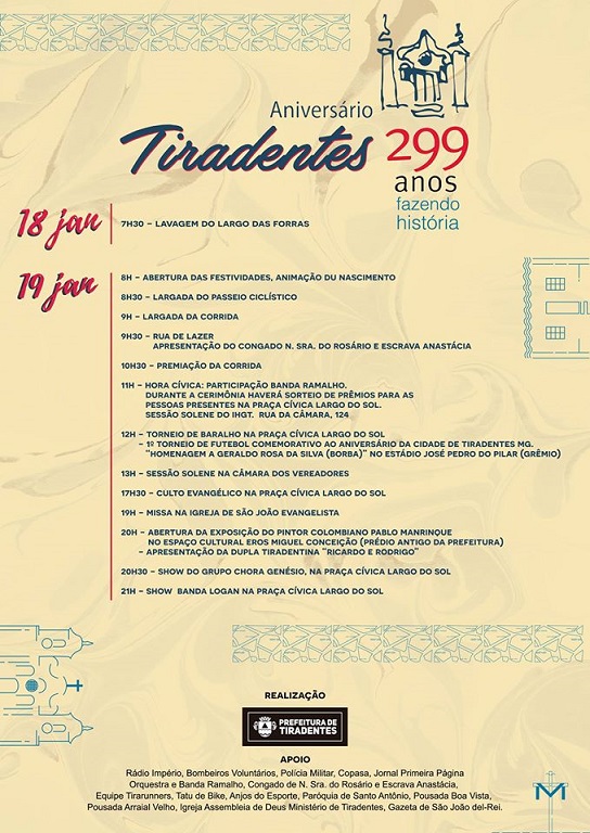 Aniversário de Tiradentes . 299 anos fazendo história . De 18 a 19/01