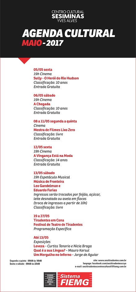 De 19 a 26.05 receberemos mais uma edição do Tiradentes em Cena – Festival de Teatro de Tiradentes, cuja programação ainda será divulgada.