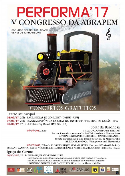 De 5 a 8 de junho, a cidade de São João del-Rei receberá o V Congresso da Associação Brasileira de Performance Musical (ABRAPEM) e o PERFORMA 17. Durante estes dias, pesquisadores, professores, musicistas e estudantes de diversas partes do país participarão de palestras, mesas redondas e apresentações de trabalhos, cujo tema central é "Performance musical na teoria e na prática: novas perpespectivas de ensino, pesquisa e performance no século XXI".