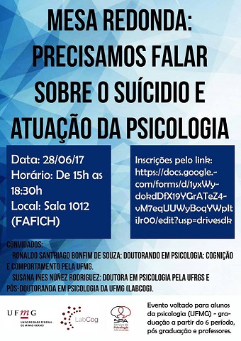 Mesa Redonda "Precisamos falar sobre suícidio e atuação da psicologia" . UFMG