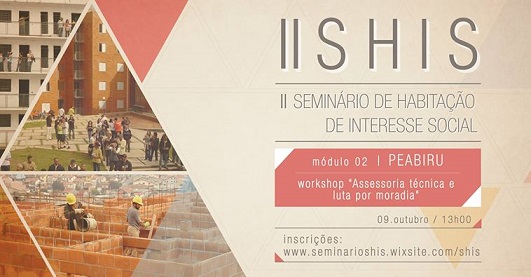 O módulo contará com a presença da PEABIRU Trabalhos Comunitários e Ambientas, uma ONG de Assessoria Técnica, fundada em 1993 por um grupo de profissionais de diversas áreas de atuação. A PEABIRU mantém estrutura institucional de Associação Sem Fins Lucrativos e uma forma de trabalho que busca a interdisciplinaridade, a troca de saberes com os grupos assessorados e a atuação no campo da luta pela moradia digna e pelo direito à cidade. O workshop será conduzido pelos arquitetos Caio Santo Amore e Maria Rita de Sá Brasil Horigoshi e terá como programação explanação de experiências em assessorias técnicas e habitação de interesse social, assim como discussão acerca de temáticas como direito à cidade e luta por moradia.