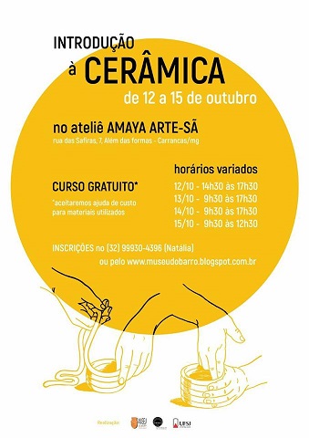 Curso "Introdução à cerâmica" no Ateliê Amaya Arte-Sã . De 12 a 15/10