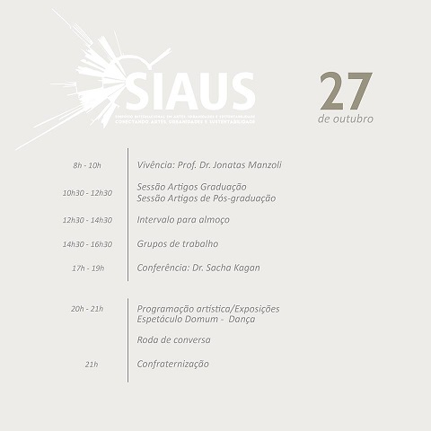 Simpósio Internacional de Artes, Urbanidades e Sustentabilidade . De 25 a 27/10
