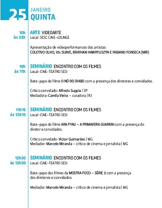 Mostra de Cinema de Tiradentes . Programação do dia 25/01