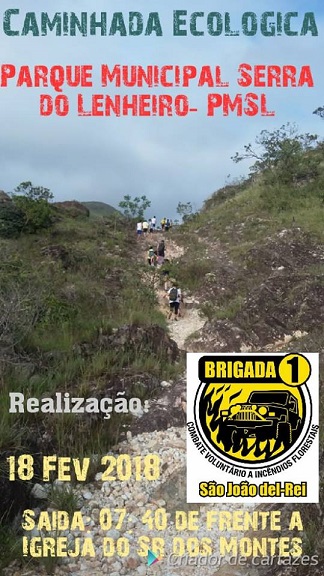 A BRIGADA 1 de São João del Rei está promovendo uma Caminhada Ecológica no Parque Municipal Serra do Lenheiro - PMSL, dia 18-FEV-2018 com saída as 7:40 hs da Capela do Senhor Bom Jesus dos Montes (Rua José Pereira Filho, 2 - Sr. dos Montes)