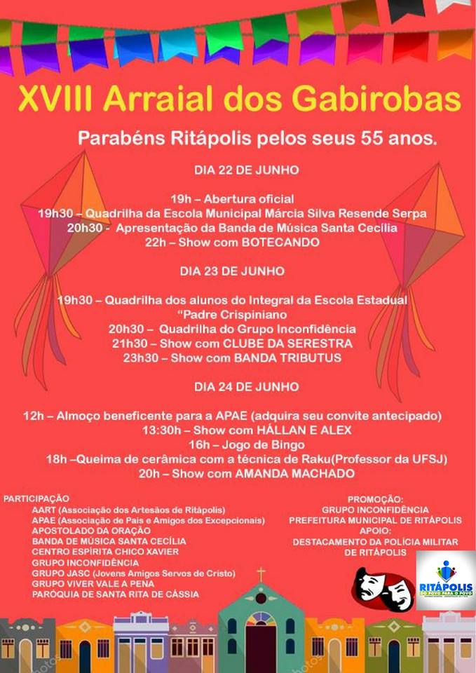 XVIII Arraial das Gabirobas . Ritápolis . MG . De 22 a 24 de junho de 2018