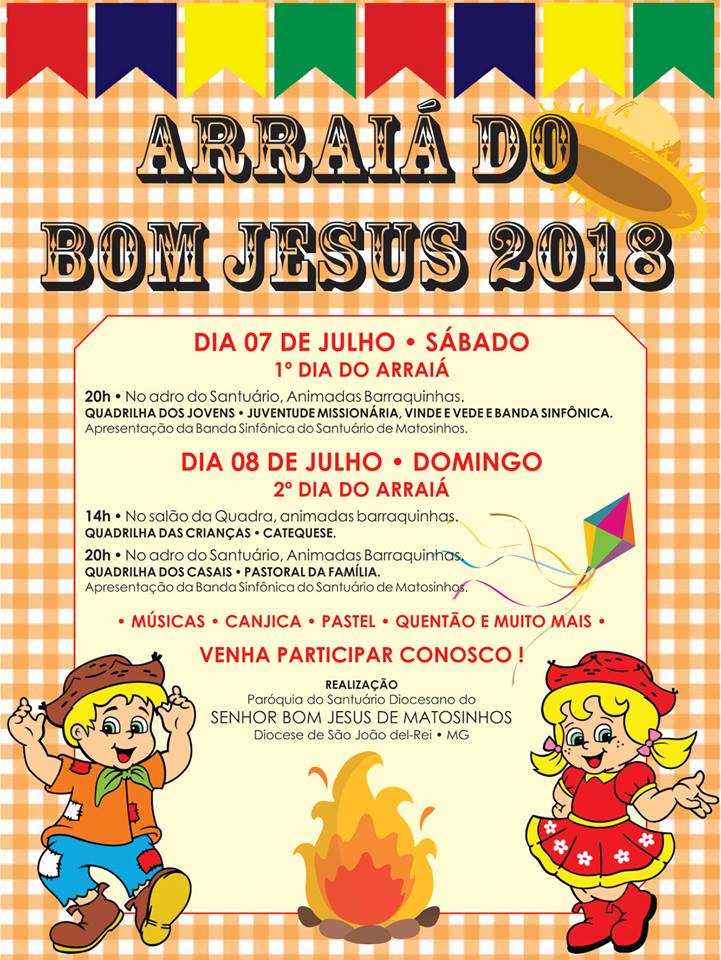 Arraiá do Bom Jesus . 7 e 8 de julho . Santuário do Sr. Bom Jesus de Matosinhos . 2018