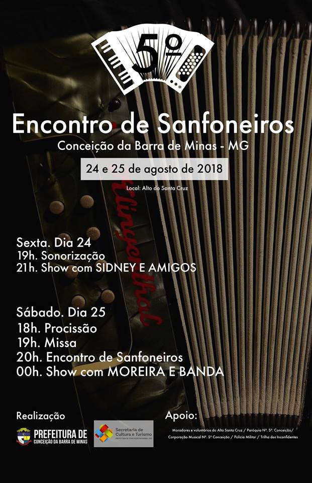 5º Encontro de Sanfoneiros . Conceição da Barra de Minas . De 24 e 25 de agosto . 2018