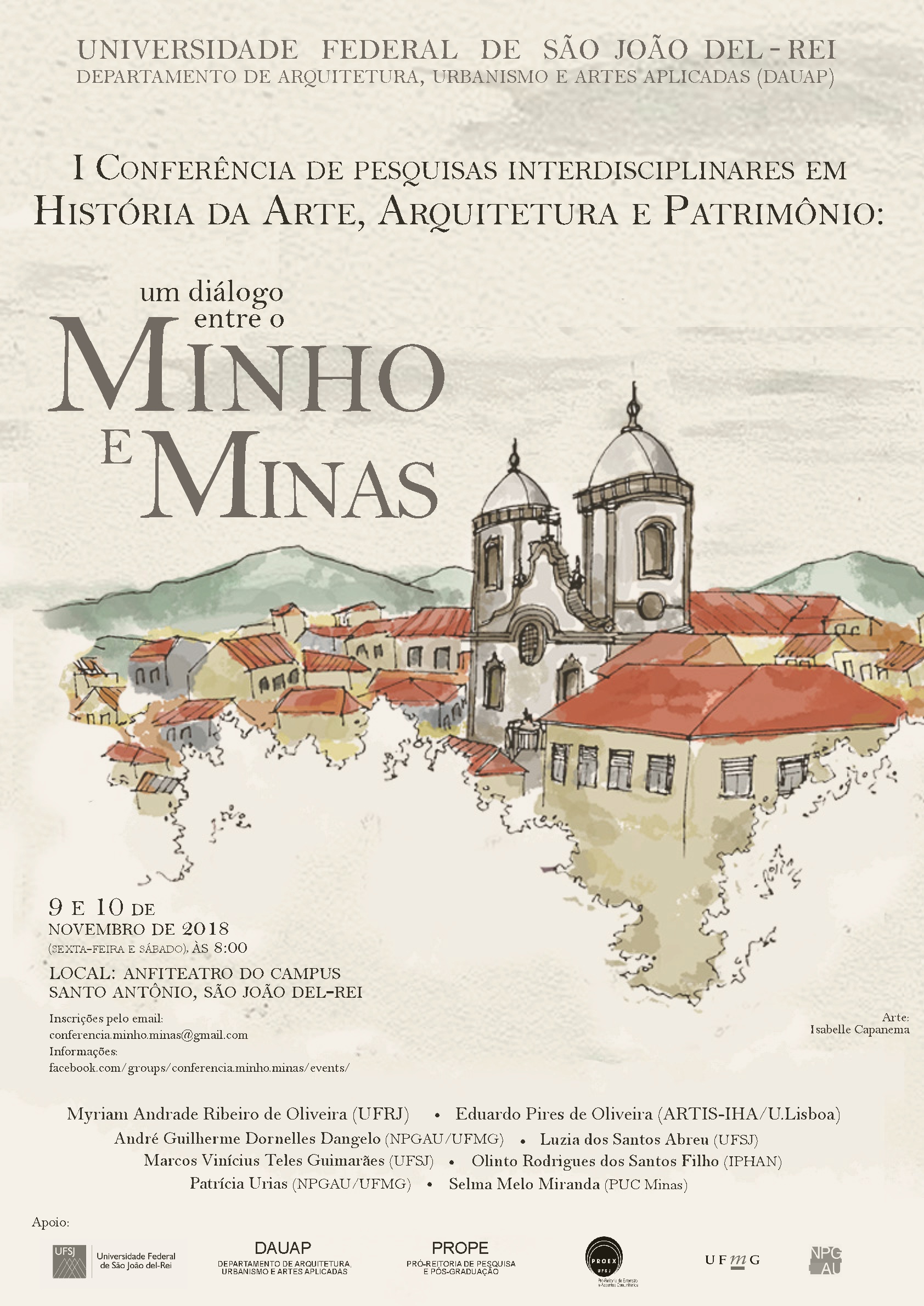 A Conferência acontecerá nos dias 09 e 10/11/2018, no campus Santo Antônio da UFSJ, na cidade de São João del-Rei. Em sua primeira edição, serão priorizadas as relações entre a região do Minho em Portugal e Minas Gerais, sendo abordados temas alusivos a artistas, entalhadores, arquitetos e mestres de obras, como Francisco de Lima Cerqueira, do Norte português, que atuou na construção de igrejas e outras edificações em Minas no setecentos mineiro. Ao tratarmos da arte e arquitetura mineiras, é inevitável abordarmos questões relativas a Antônio Francisco Lisboa, o Aleijadinho, considerado o mestre do período rococó. Os diálogos entrelaçam-se com o patrimônio, procurando evidenciar a relevância da sua preservação, incluindo o casario tradicional remanescente.