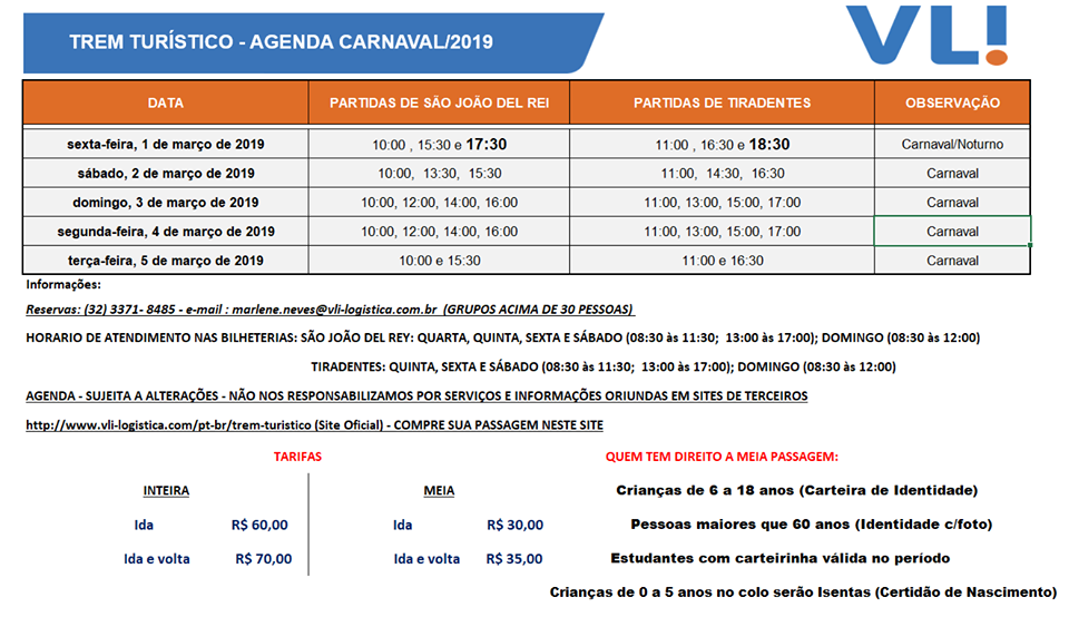 Trem Turístico . Agenda Carnaval . 2019
