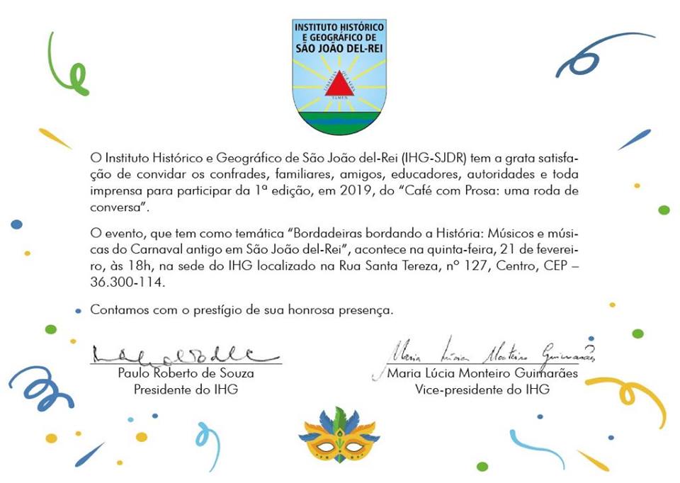 "Café com Prosa: uma roda de conversa" . Instituto Histórico e Geográfico de SJDR . 2019
