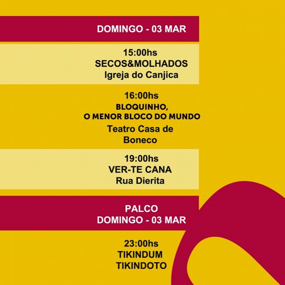 Carnaval Cultural de Tiradentes . Programação 03 de março . 2019