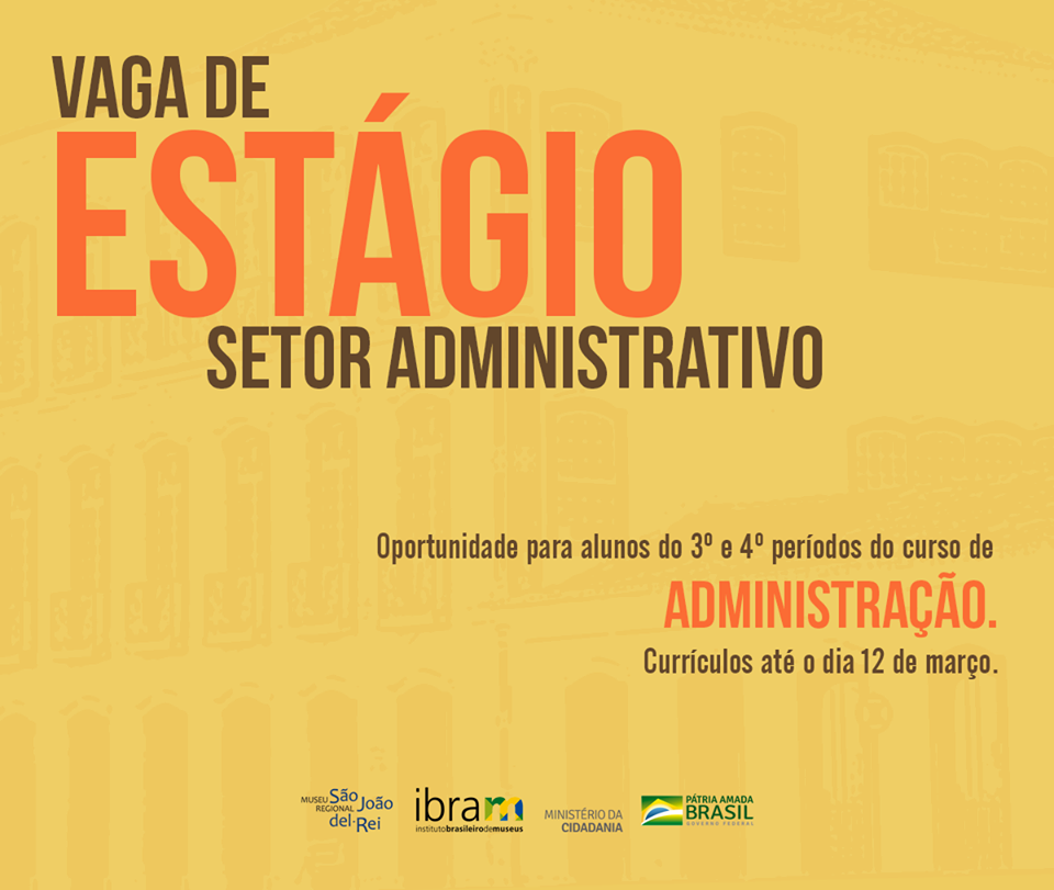 Vaga de Estágio Setor Administrativo . Museu Regional de São João del-Rei . Currículos até 12 de março . 2019