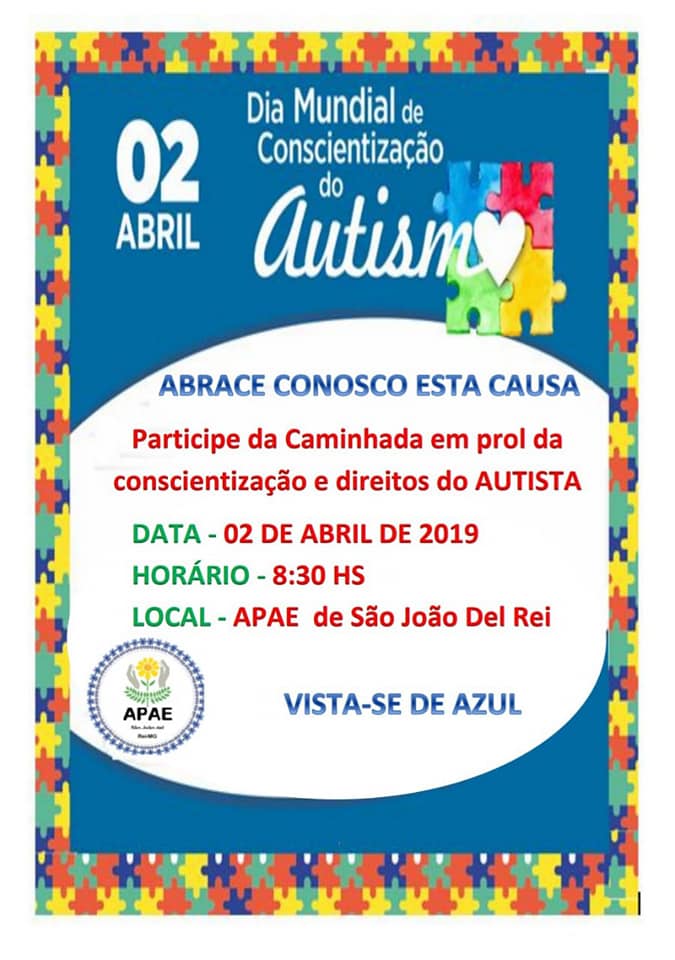 Caminhada em prol da conscientização e dos direitos do Autista . Dia Mundial de Conscientização do Autismo . APAE SJDR . 2019