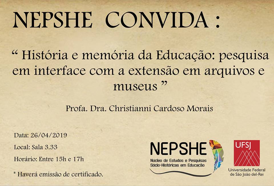 Núcleo de Estudos e Pesquisas Sócio- Históricas em Educação (NEPSHE) . Campus Dom Bosco - UFSJ . 2019