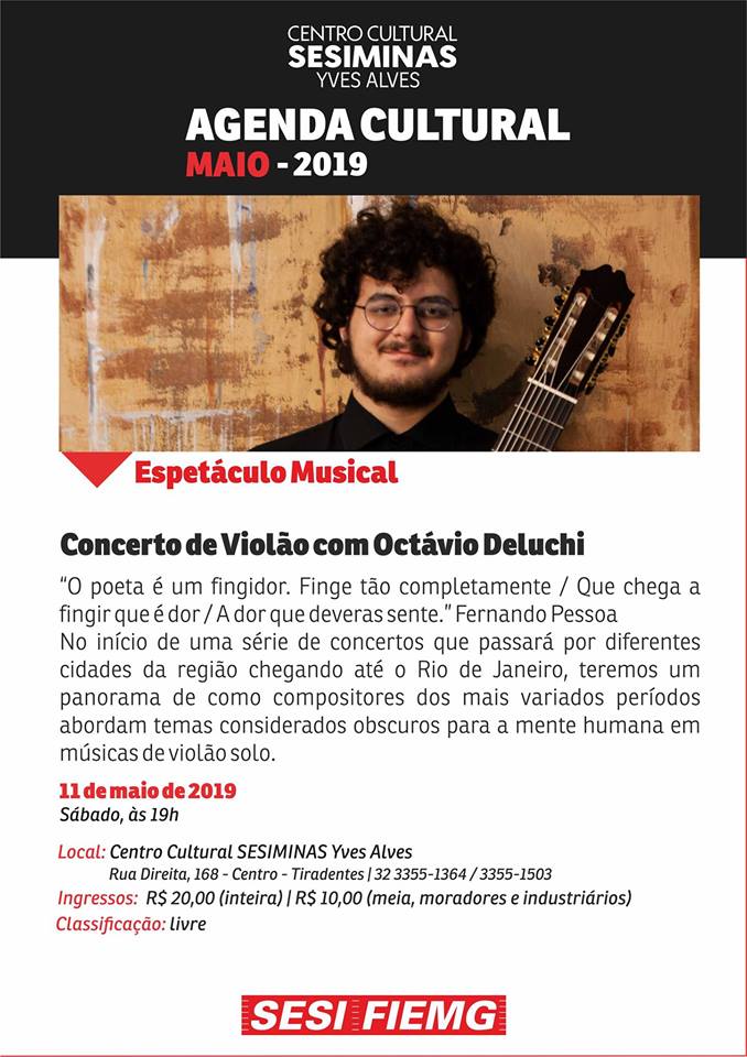 Dia 11 de Maio (sábado), às 19 horas, no Sesi Minas Tiradentes Yves Alves, concerto de violão com Octávio Deluchi.