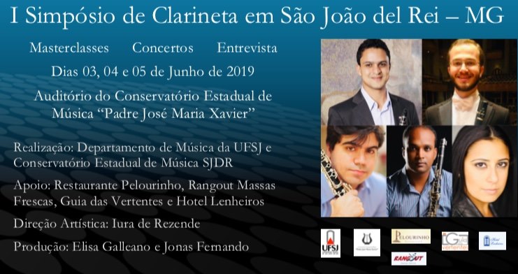 I Simpósio de Clarinetas . Departamento de Música UFSJ . Conservatório Estadual Pe. José Maria Xavier . Dias 03, 04 e 05 de junho . 2019